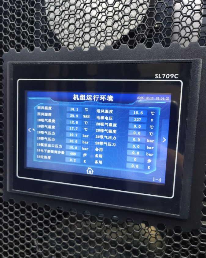 本次项目核心配置3台制冷量40KW的列间空调,精准适配机房运行需求。该系列列间空调采用贴近热源、精准控温的设计,可快速带走发电机组监控设备、服务器及数据存储设备运行产生的热量,有效消除机房局部热点,稳定维持机房恒温环境,满足精密电力设备的严苛运行要求,同时具备抗干扰、运行稳定、节能高效的优势,可根据机房热负荷动态调整制冷参数,兼顾运维便捷性与能耗控制,契合发电厂高效节能环保的发展理念。